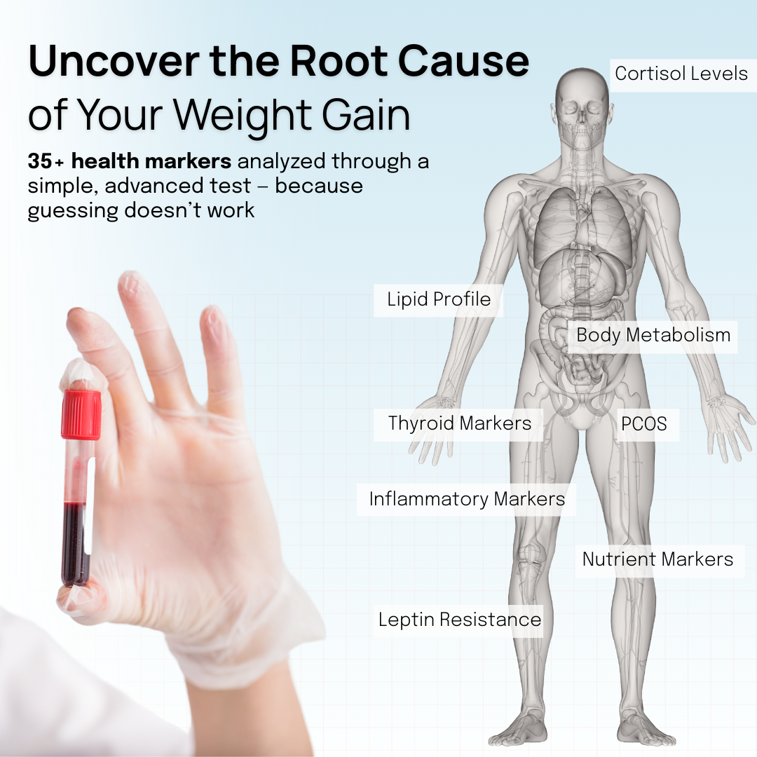 This detailed assessment ensures we identify hidden factors contributing to weight gain or difficulty in weight loss.